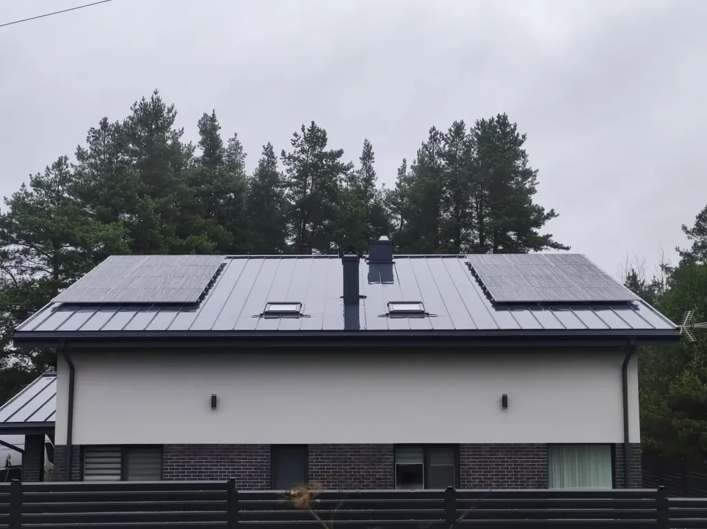 Saulės elektrinė ant skardinio stogo